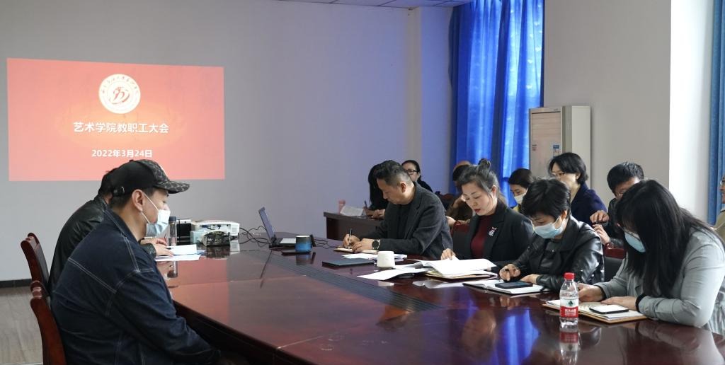 2022年3月24日,我院組織召開全體教職工大會,院黨委書記夏艷、院長焦道利、院黨委副書記何姍、副院長江霄以及全體教師參加會議。會議由焦道利主持,在藝術樓306會議室召開。