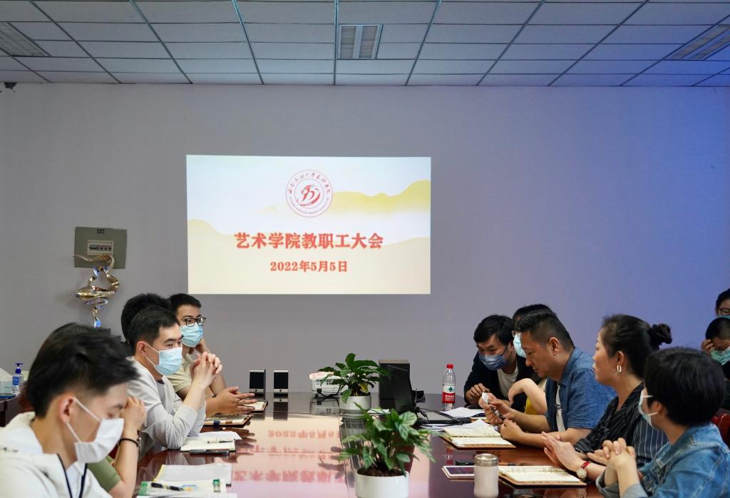 2022年5月5日,我院組織召開全體教職工大會(huì),院黨委書記夏艷、院長焦道利、院黨委副書記何姍、副院長江霄以及全體教師參加會(huì)議。會(huì)議由焦道利主持,在藝術(shù)樓306會(huì)議室召開。