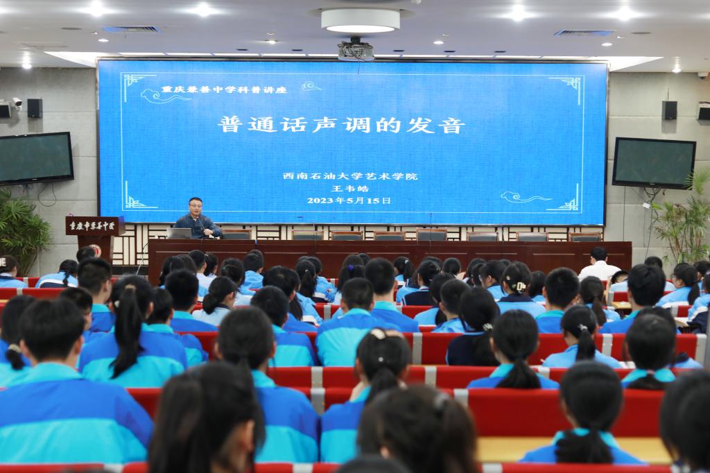 5月15日,我院王韋皓教授受邀到重慶兼善中學開展“普通話聲調的發音”科普講座,兼善中學200余名學生聆聽講座并與王韋皓教授開展互動交流。