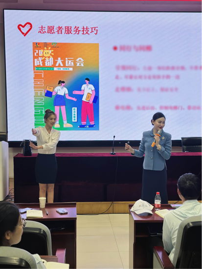 大運會即將來臨,為了激發志愿者服務的積極性,增強其責任感和光榮感,提高志愿者在大運會中的服務質量。我院朱珈儀老師受成都大運會執委會邀請,于2023年5月8日至11日在中共成都市委黨校,為第三十一屆世界大學生夏季運動會志愿者代表們開展為期四天的《文明禮儀》專題培訓講座。各位志愿者是從四川省幾十所高校中甄選出來的500名優秀的學生代表。