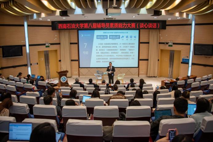 本次校級決賽參照全國全省賽制,大賽題目緊扣輔導員工作實際。案例研討環節采用AB角“我提問,你回答”的方式開展,每組AB選手圍繞案例,辨析原因、研討對策、總結經驗,考察輔導員綜合運用理論分析、研判、解決、應急處理突發事件等能力。談心談話環節是選手以情景再現的方式與助演學生開展談心談話,談話結束后結合談話情況進行簡短總結,主要考察輔導員對學生特征、成長成才規律的了解把握程度,以及教育引導能力、解決理論困惑和實際問題的能力等。