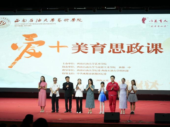 近日,藝術(shù)學(xué)院主辦的以“家國天下”為主題的“愛+”美育思政課先后走進新都一中和諭亭小學(xué),以實際行動將我校的思政教育輻射到環(huán)西南石油大學(xué)基礎(chǔ)教育聯(lián)盟學(xué)校。兩所學(xué)校千余名中小學(xué)生觀看了這堂“不一樣”的思政課,“大手牽小手”,走“新”更入“心”。校黨委常委、副校長李德海出席活動。