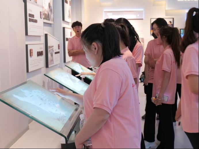 活動伊始,學(xué)生們跟隨著講解員的腳步,參觀天府家風館。先賢家風、紅色家風、當代家教、時代新家四個主題展廳分別展示了不同歷史時期的家風文化,學(xué)生們聚精會神地聆聽講解,不時駐足觀賞展品,探尋家風迭代的脈絡(luò),學(xué)習并領(lǐng)悟蘊含在家風中、由古傳承至今的民族精神與清廉文化。此外,在“戰(zhàn)地家書劇場”,電影以家書為引,還原出將士在報國時的親情與大義。名將衛(wèi)國精神長存,紅色家風永不褪色,一幕幕畫面動人心弦,感染了在場的師生。除故事述說、展品講解與影像展播以外,家風館還依托現(xiàn)代科技,讓同學(xué)們在多維度、沉浸式體驗家風的各項活動中,進一步收獲新的認知與心得。
