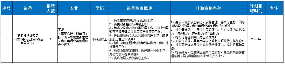 本次公開招聘,共計劃招聘人員9名。用人單位、崗位名稱、學歷、專業、年齡、工作年限、崗位說明及要求等信息詳見附件《2025年福州文體產業開發運營有限公司招聘需求明細表》(附件1)。
