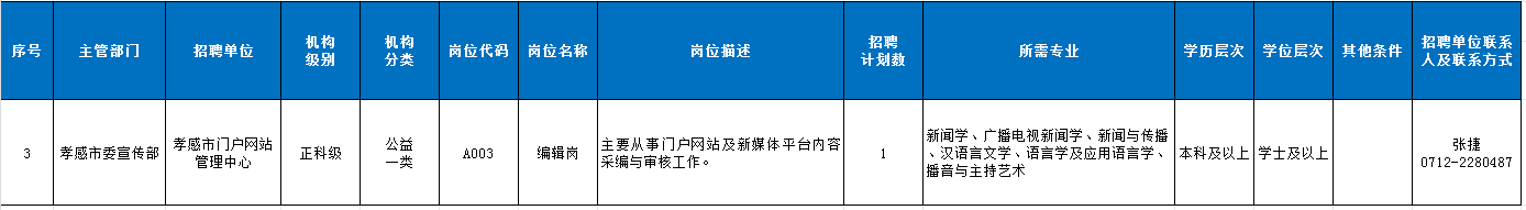 孝感市委宣傳部招聘播音主持人才1名,崗位及要求詳見(jiàn)下圖:
