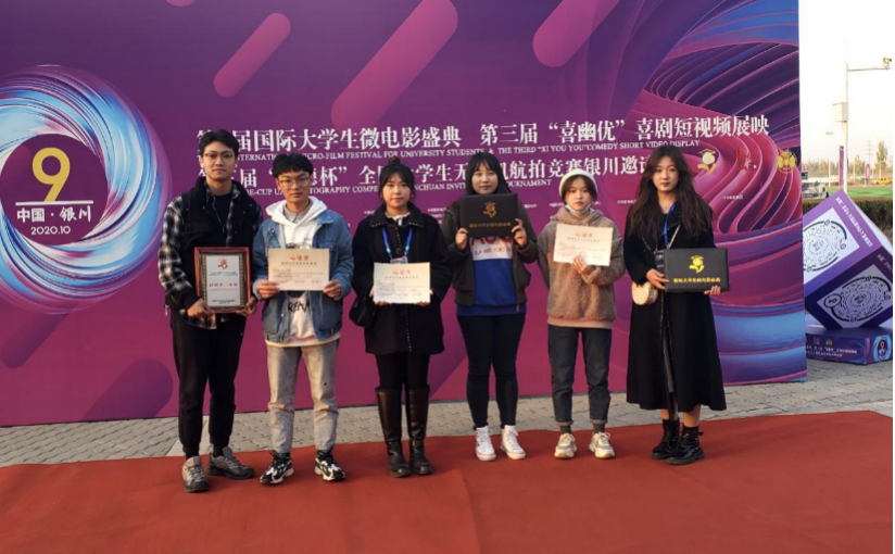 2020年10月29日,我院六位同學應邀參加“第九屆國際大學生微電影盛典”。在本次盛典中,2018級孫明春、王博汶同學的作品《堅守》斬獲紀實類二等獎,2017級李顏婷、陳怡伶同學的作品《一支口紅》和2019級劉書慧、彭思嘉同學的作品《清風徐來》榮獲劇情類三等獎。我院老師焦道利、江霄、李晨獲得“最佳指導教師”的稱號。