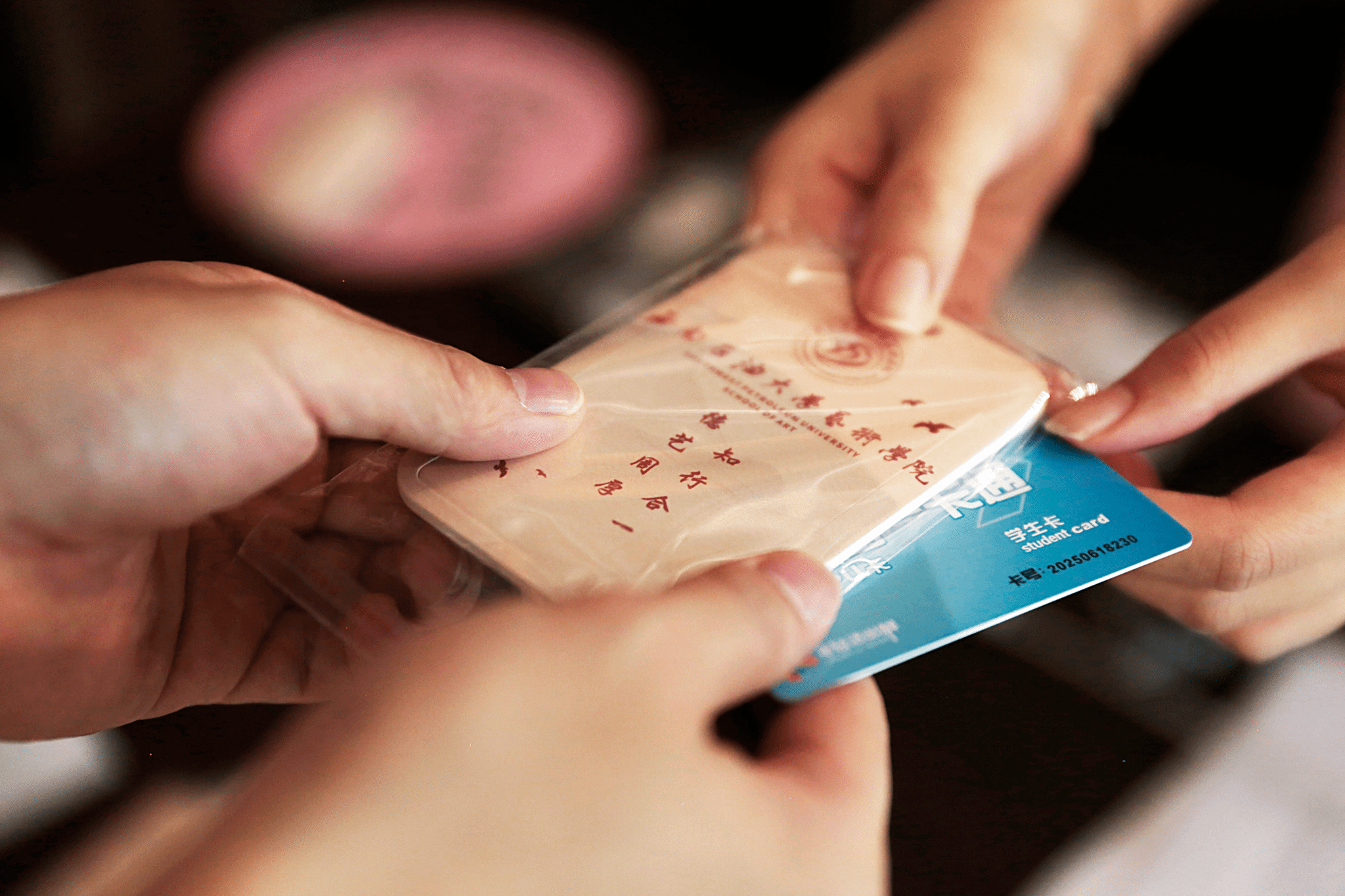 值得一提的是,研會為新生們特別定制了富有藝術感的校園卡套。卡套以學院標識色為主調,融合青春與學術元素,既實用又寓意深遠——愿每一位新生在這里書寫屬于自己的精彩篇章。報到現場,輔導員親手將這份心意遞到每位同學手中,溫暖在指尖傳遞,感動在心間流轉。