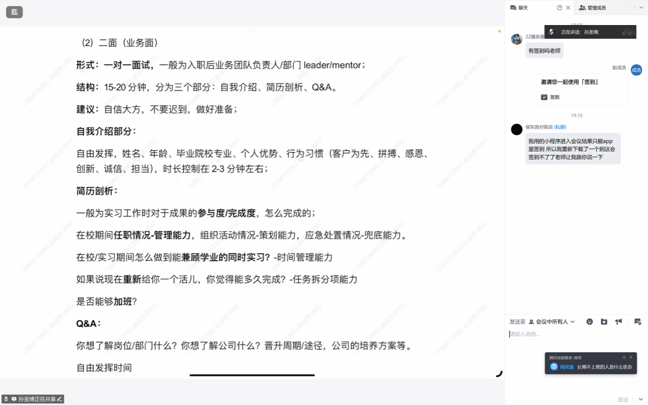 面試經(jīng)驗(yàn)分享環(huán)節(jié),學(xué)長學(xué)姐介紹,群面多為8-10人無領(lǐng)導(dǎo)小組討論,題目常圍繞業(yè)務(wù)實(shí)際場(chǎng)景,流程包含5-8分鐘讀題、5分鐘個(gè)人發(fā)言、8分鐘自由討論及2分鐘HR提問。談及二面(業(yè)務(wù)面),侯雨昕學(xué)姐表示,一對(duì)一面試中,自我介紹需控制在2-3分鐘,涵蓋個(gè)人優(yōu)勢(shì)與“客戶為先、創(chuàng)新?lián)?dāng)”等行為習(xí)慣。孫圣博學(xué)長建議同學(xué)們直擊問題核心,先亮結(jié)果再述過程,善用藝術(shù)生的重音、停連優(yōu)勢(shì),保持自信大方;簡(jiǎn)歷要清晰說明成果參與度與時(shí)間管理方法,HR常關(guān)注“任務(wù)拆解能力”“加班接受度”等焦點(diǎn)問題;問答環(huán)節(jié)可主動(dòng)咨詢崗位晉升周期與公司培養(yǎng)方案,展現(xiàn)求職誠意。