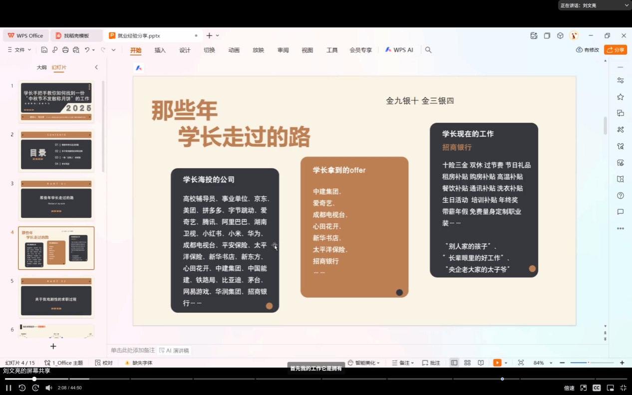 劉文亮指出,當前就業市場競爭激烈,求職壓力較大,建議同學們可嘗試跨專業投遞簡歷,以增加上岸概率。非專業崗位(如建筑宣傳崗)的薪資同樣較為可觀,且競爭相對較小。隨后,劉文亮結合自己在招商銀行的求職經歷展開詳細講解。他提到,招商銀行的招聘流程復雜,涵蓋簡歷篩選、筆試、AI面試、線下面試等環節,每輪淘汰率約達2/3,自己在通過AI面試后臨時決定參加線下面試,憑借對新媒體領域的深入理解,在一面中順利通過。二面時雖遇區塊鏈經濟難題未能作答,但通過主動爭取機會,最終成功獲得offer。這一真實案例讓同學們對企業招聘流程及應變技巧有了更直觀的認識。