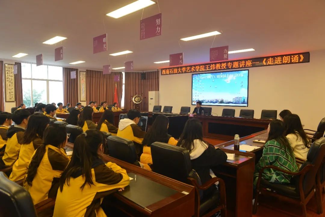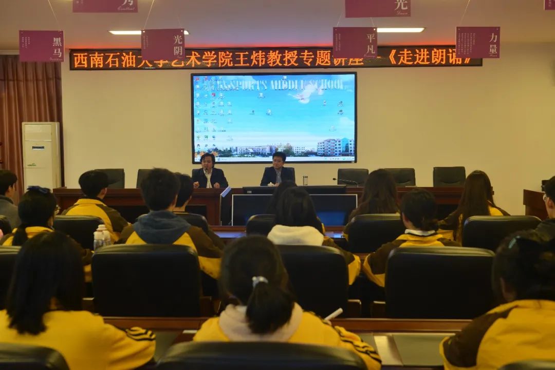 金秋十月,微風輕柔。2021年10月20日,我院王煒教授走進四川省雙流藝體中學,為播音主持專業(yè)學生做了《走進朗讀》的專題講座,旨在讓學生對普通話發(fā)聲、朗讀技巧、朗讀情感以及播音主持專業(yè)有更深刻的了解。