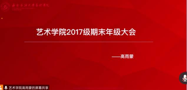 2020年12月29日下午17點,藝術學院2017級期末年級大會通過線上形式召開,學院2017級輔導員高雨蒙老師主持會議。
