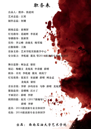 2019年12月16日晚七點半,2016級表演專業畢業大戲《生死場》在藝術大樓201演播廳完美落幕。