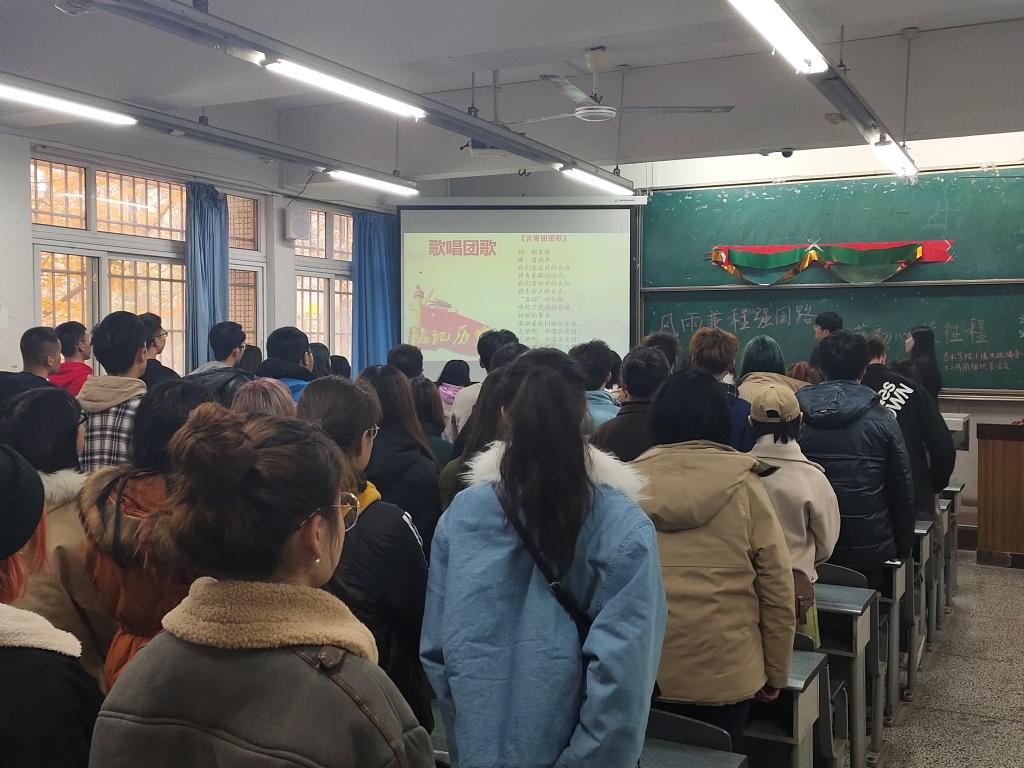 下午四時三十分,西南石油大學藝術學院2019級廣播電視編導一、二支部團組織生活會如期召開。主持人唐思敏、閔松在簡短地介紹本次團會的意義之后,正式宣布本次團會開始。同學們隨即全體起立,脫帽,歌唱團歌。