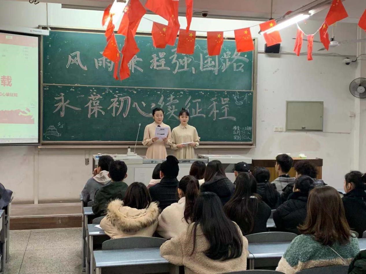 回望過(guò)去,高頌紅歌。隨著主持人一聲全體起立,同學(xué)們熱情高昂地唱起了團(tuán)歌《光榮啊,共青團(tuán)》。團(tuán)歌歌唱結(jié)束,全體同學(xué)坐下,主持人陳詩(shī)濤和魏妤珂開(kāi)始講述此次團(tuán)會(huì)的重要意義。習(xí)近平同志強(qiáng)調(diào),中華民族再次走到了一個(gè)重要的十字路口,只有不忘初心,牢記使命,團(tuán)結(jié)全國(guó)各族人民攻堅(jiān)克難,才能實(shí)現(xiàn)中華民族的偉大復(fù)興。廣大青年要擔(dān)當(dāng)作為、蹄疾步穩(wěn)、奮勇前進(jìn)、不能有任何停一停、歇一歇的懈怠,積極提高個(gè)人的思想自覺(jué)、政治自覺(jué)、行動(dòng)自覺(jué)。堅(jiān)定不移緊跟黨的領(lǐng)導(dǎo),嚴(yán)于律己,不忘初心。在主持人的講述下,同學(xué)們深有感慨,紛紛打起精神,認(rèn)真地開(kāi)展好團(tuán)會(huì)活動(dòng)。