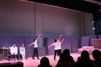 8:30在大家期待的目光下,活動準時開始,毛姐和雞哥以幽默風趣的話語,拉開了晚會的帷幕,同時介紹了此次活動的互動比賽,晚會共有十四個節目,每個節目結束以后,都會搬出一個墩墩,按專業分為三組進行比賽,率先站到墩墩上的同學就可以說出自己對于劇名的猜測答案,答對得兩分,答錯扣一分。規則介紹完畢,第一個節目正式開始,一名女子穿著病服與她的醫生坐在長凳上,三名女子在他們面前翩翩起舞。女孩忍不住自己也跳了起來。片段很短,但將《芳華》表現的淋漓盡致,果不其然,三名代表爭先恐后爭搶墩墩,答案脫口而出,無需猶豫。