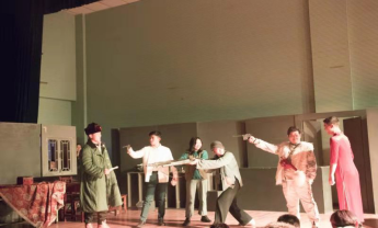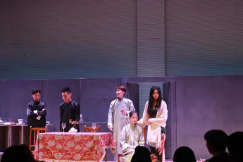 第二個節目是《茶館》,舞臺上同學們的表演讓我們仿佛置身茶館,茶館中的一舉一動都讓我們牽念著,雖然每個節目都只有幾分鐘,但同學們沉浸其中。無論是《青春之歌》《無問西東》《駱駝祥子》還是《建黨偉業》,每一個片段都精彩萬分,而臺上同學精彩而特色分明的演出,也讓臺下的同學們對于劇名一猜即中,緊接著還有《我的1919》,《與妻書》《紅巖》讓臺下同學們體會到了那個年代為大家舍小家的愛國情懷。晚會進行到一半,雖然同學們被節目深深吸引,為防止同學們感到無聊,雞哥和毛姐為大家準備了激情的音樂與舞蹈,調動大家一起活躍起來。活躍過后,節目繼續《閃閃的紅星》音樂響起,舞臺上燈光亮了,冬子被綁在柱子上,胡漢三惡狠狠的抽著他,但邪不壓正,冬子很快就得到了紅軍的解救,無論是那個年代的紅軍還是今天的解放軍,他們始終與百姓站在同一戰線上,《我和我的祖國》演出了新中國剛剛成立時,那些科研人員為了國家的努力與犧牲,《白楊禮贊》以樹喻人,講述了邊防軍人的艱辛,《軍禮》則是對軍人的艱險生活與艱難生活的縮影,最后《智取威虎山》帶領晚會走到了高潮。