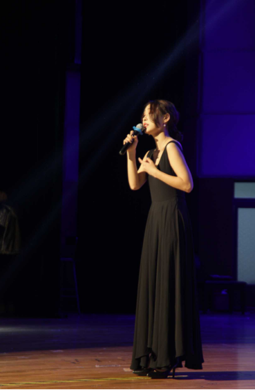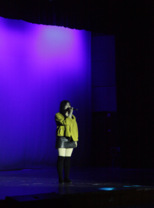 首先,是往屆的優(yōu)秀選手王欣璐學(xué)姐帶來的暖場歌曲《殘酷月光》。