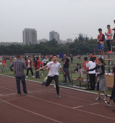 紅白相間的跑道上,運動員們整齊有序的站在起跑線上,蓬勃的力量將他們的身體變成了蓄勢待發的弓箭,槍響后,他們沖出起跑線,在紅色跑道上奮力奔跑,勢如破竹的力量化作他們腳下沉穩的步伐,點燃了賽場上的熱情。起跑時,張樂雖然落在后面,但他不放棄,依然奮力奔跑,追逐著前面的同學,藝術院其他同學站在看臺上為他吶喊助威,同學們的呼喊聲為他注入了新的力量,最后半圈時,他加速向前沖去,當他沖過終點以后,藝術學院的同學們紛紛圍上去扶住他。
