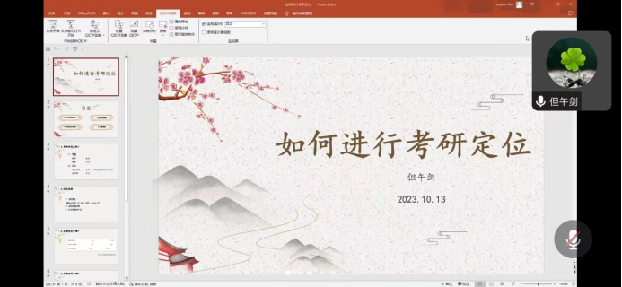 會議分為考研院校與專業推薦、考試模式指導和學生代表經驗分享三個部分。但午劍向同學們提到如何再次進行考研定位來確定院校專業以及現階段練習考研真題的重要性,包括做題的技巧和方法,并提供了近年來的我院學碩與專碩的報考數據,提醒同學關注備考院校的最新信息。
