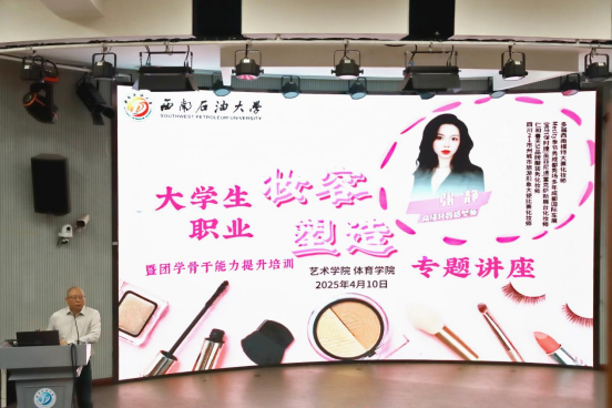 4月10日晚,藝術學院于思學樓C110開展大學生職業妝容塑造專題講座,特邀高級化妝造型師張靜進行專題指導教學。本次講座聚焦職業形象管理與創新創業不同場景的融合,通過“理論教學+實踐演練”的教學模式,為在場學生解鎖職場視覺表達新思路。