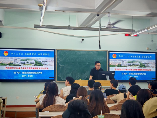 為引導(dǎo)和幫助廣大青年學(xué)生上好與現(xiàn)實相結(jié)合的“大思政課”,在社會課堂中“受教育、長才干、作貢獻”,堅定信念聽黨話、跟黨走,5月19日藝術(shù)學(xué)院在思學(xué)樓A413召開2025年“”三下鄉(xiāng)社會實踐活動動員大會。學(xué)院輔導(dǎo)員李安然、朱楊及24 級全體學(xué)生參加會議。