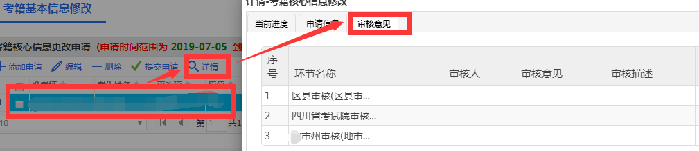 3、下發(fā)的數(shù)據(jù)每條都可以看到每一級(jí)審核的意見,在詳情里進(jìn)行查看,如圖。