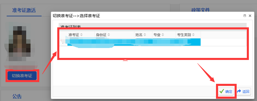 該功能用于考生切換需要做業(yè)務(wù)的準(zhǔn)考證。操作如圖: