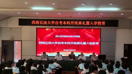 10月25日,我校自考教學點四川機電職業技術學院在攀枝花校區學術廳一樓舉行253次自考本科開班儀式暨入學教育活動。我校繼續教育學院副院長阮雪梅、四川機電職業技術學院副校長滿海波出席活動,四川機電職業技術學院繼續教育部部長張浩鋼主持,253次自考本科新生線上線下同步參加。