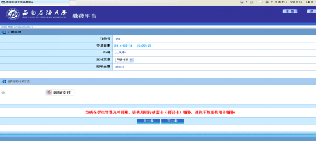 2、為保障您的資金安全“西南石油大學繳費平臺”依托中國銀行支付系統,支持200家銀聯卡及網銀支付(建議使用銀行儲蓄卡,不使用信用卡);