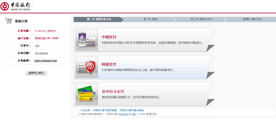 2、<![endif]>中國銀行網銀支付通道(專用于中國銀行卡網銀支付):<![endif]>