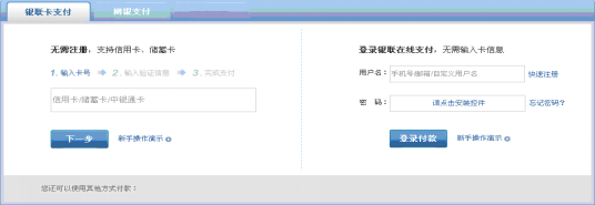 (2)銀聯卡支付。該方式可用200家銀行的銀行卡、信用卡支付,但一般每次支付不超過2000元。如圖8-3: