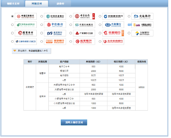 在網銀列表中,選取支付銀行,以工行為例,如圖8-2: