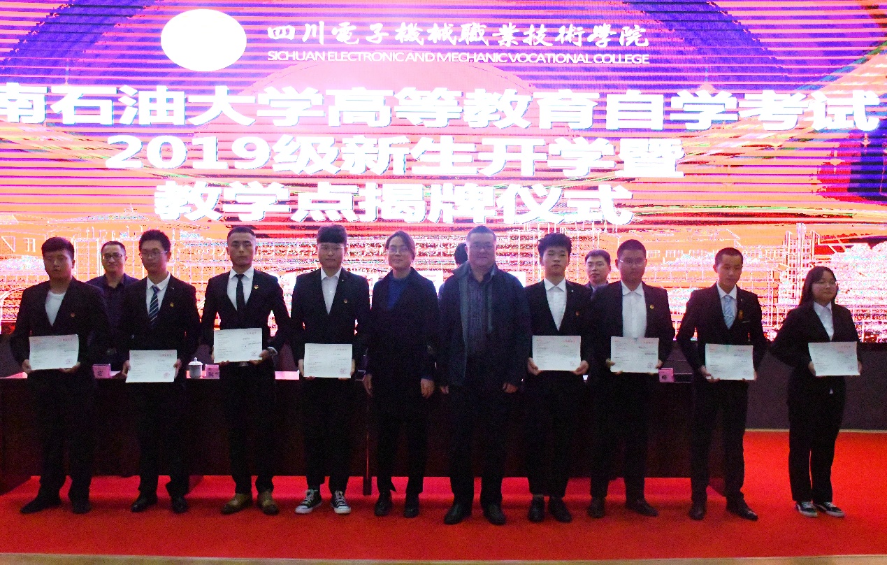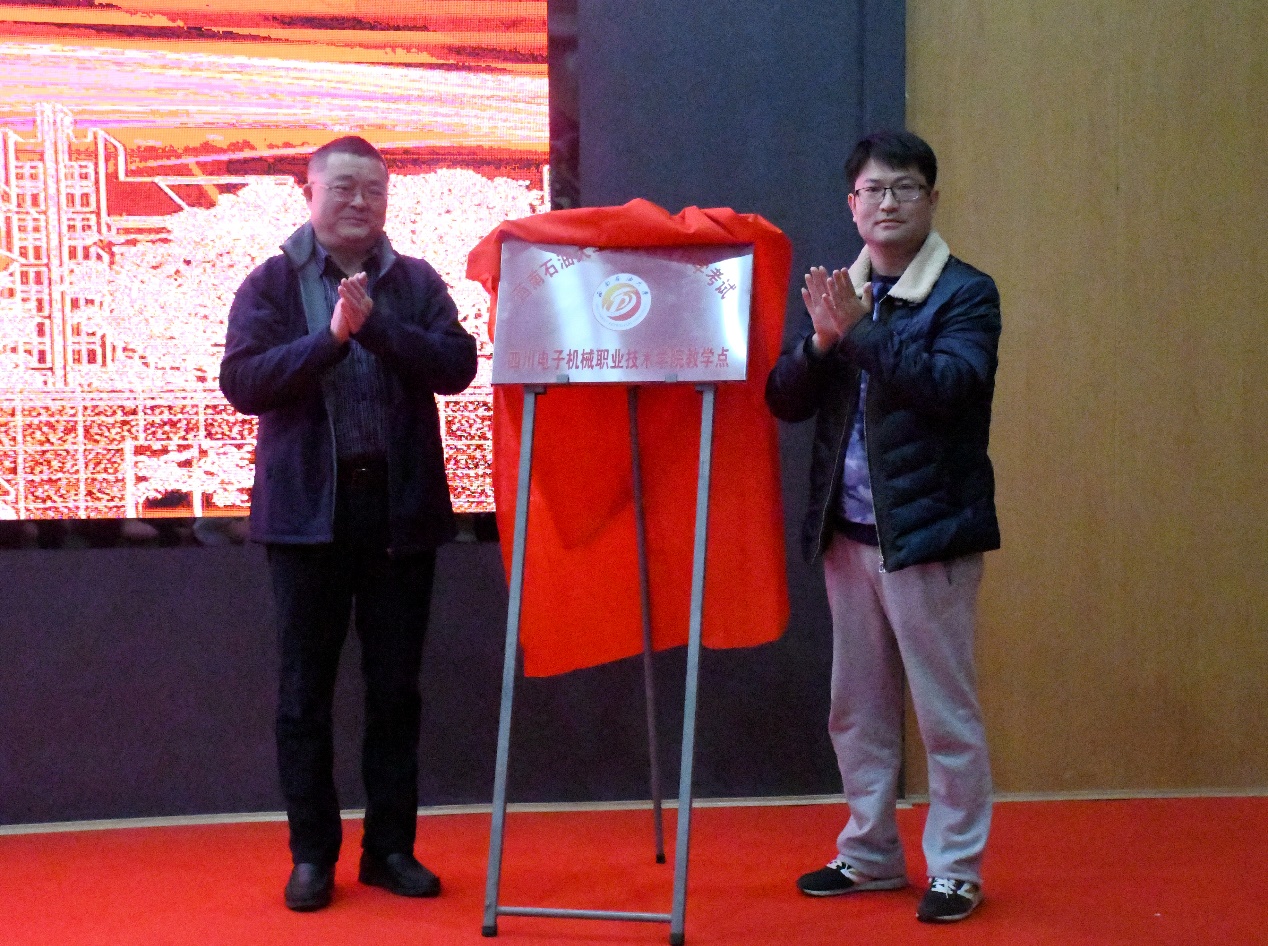 隨后,湯富榮院長和黃藝副院長共同為西南石油大學高等教育自學考試四川電子機械職業技術學院教學點進行了揭牌。