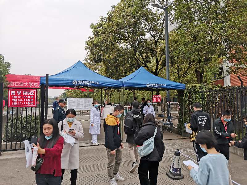 本次考試是在新冠肺炎疫情防控常態化下舉行。我院按照省招考委、省教育廳和省衛健委?關于做好我省2020年國家教育考試新冠肺炎疫情防控工作的通知?和我校?西南石油大學考點新冠肺炎疫情防控常態化下社會考試組考防疫工作實施方案?的要求,認真做好考試期間防疫工作:一是要求考試相關工作人員及考生,在開考前14天進行每日體溫測量,記錄健康狀況,并填寫健康聲明書;二是指定專人對考試場所進行徹底的衛生大掃除和預防性消毒;三是設置考試專用通道,隔離考場,準備防疫用品,根據防疫要求安排考生間距,查驗赴考考生健康碼,對赴考考生進行體溫監測;四是校醫院醫護人員全程值守??荚嚻陂g,未出現異常情況。