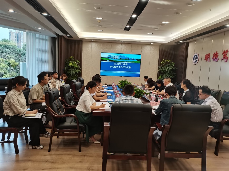 服務中心各部門負責人匯報了2021年上半年的工作情況,總結了自考在招生、教學管理、助學效果、綜合服務等方面取得成績、面臨的問題及挑戰,針對性地提出了下一步工作思路和應對措施,并對后續工作做了詳細的安排和規劃。