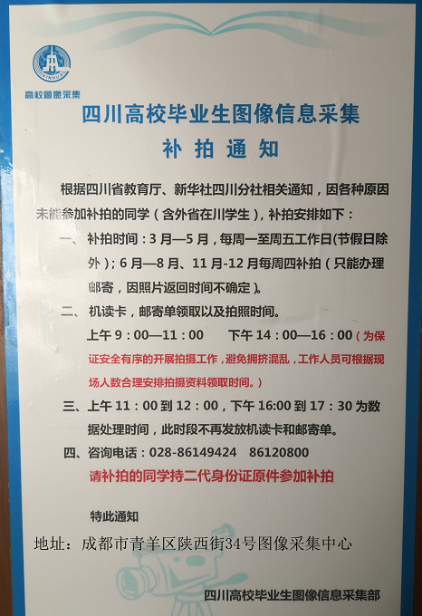 (4)因工作或其他特殊原因不能按時參加此次圖像采集的學生,請按《畢業生電子圖像采集補拍通知》要求辦理(見附件)。