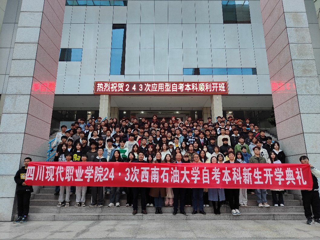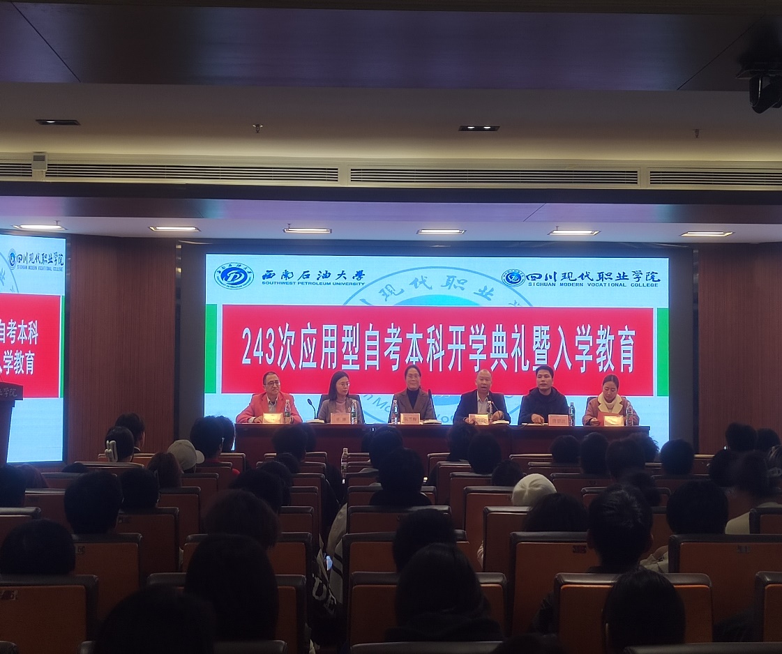 11月30日下午,我校自考教學點四川現代職業學院在該校崇實樓6樓隆重舉行243次自考本科新生入學典禮。我校繼續教育學院副院長阮雪梅及自考辦負責人、四川現代職業學院培訓學院院長繆世凱及自考負責人出席了入學典禮。入學典禮由繆世凱主持。191名243次自考本科新生參加了入學典禮。