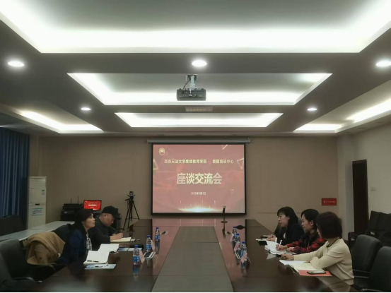 走訪組同新疆油田培訓中心黨委委員、財務總監侯媛媛等座談交流