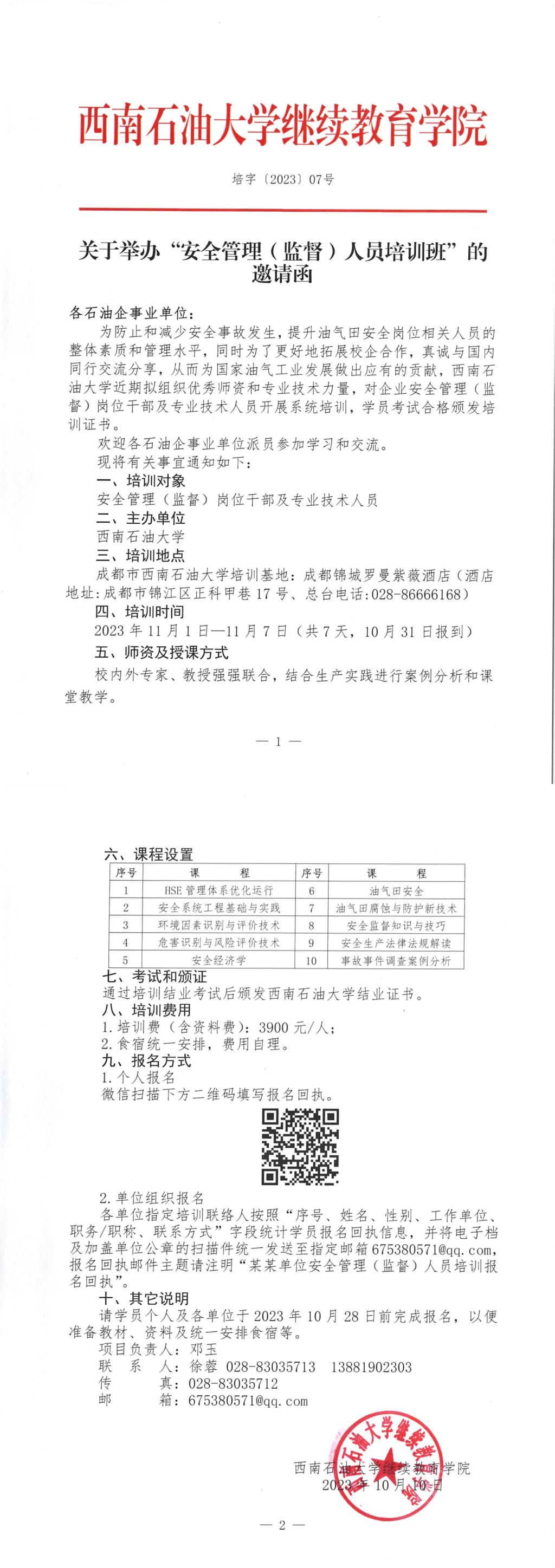 關于舉辦“安全管理(監督)人員培訓班”的邀請函