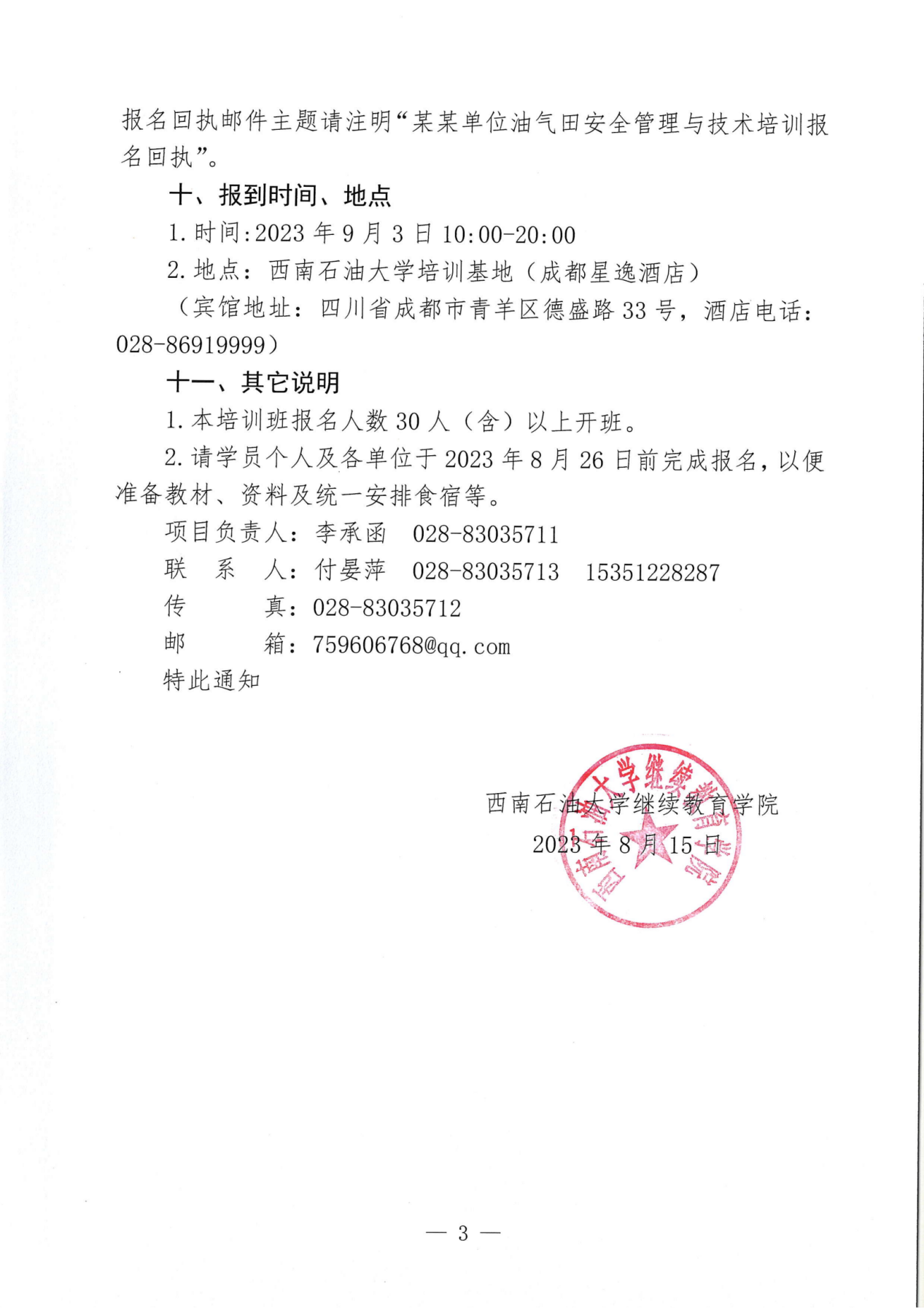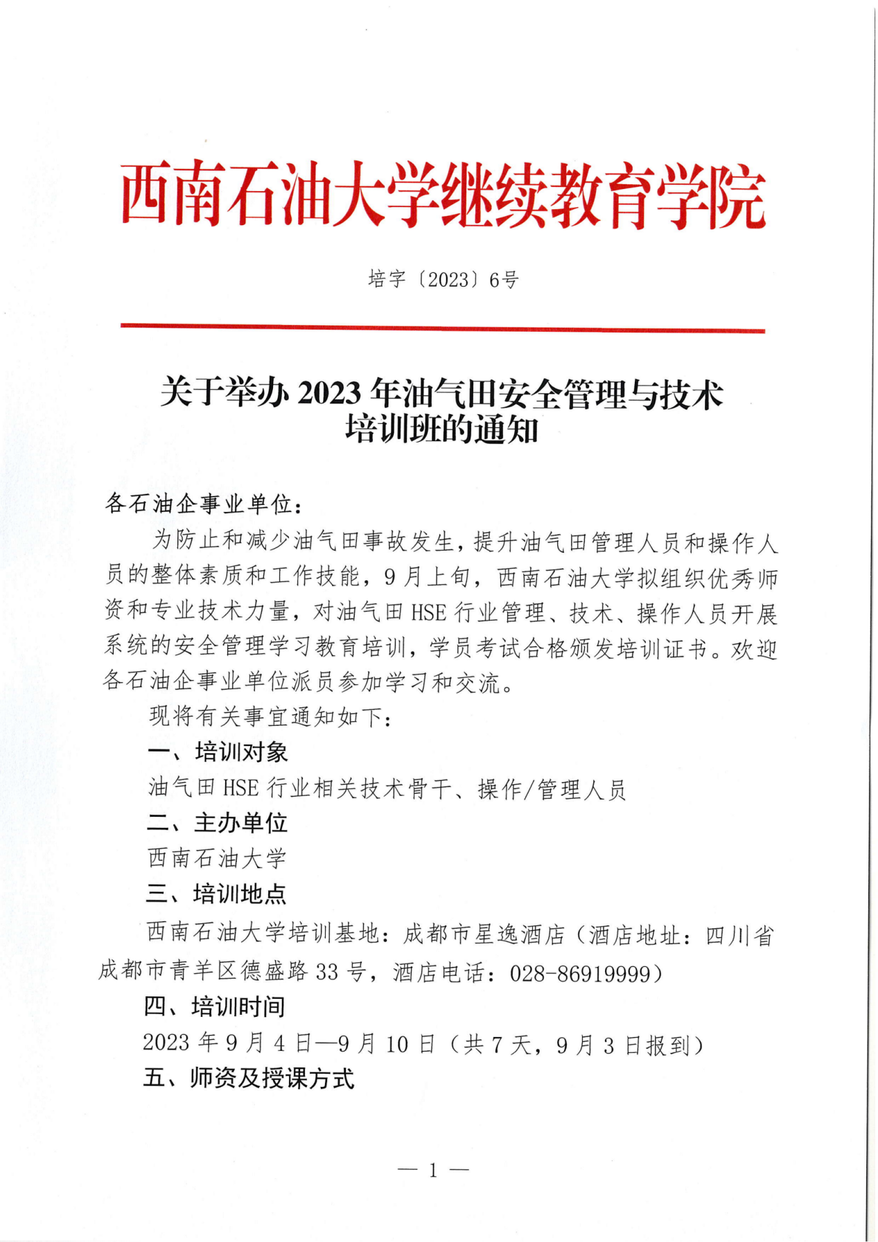 關(guān)于舉辦2023年油氣田安全管理與技術(shù)培訓(xùn)班的通知
