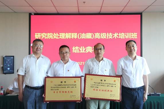 最后,學(xué)院副院長(zhǎng)朱治富和西南物探研究院黨委書記陳穎分別宣讀了學(xué)校授予培訓(xùn)班獎(jiǎng)牌和校企雙方對(duì)“優(yōu)秀學(xué)員”的表彰決定,學(xué)院兩位院領(lǐng)導(dǎo)為培訓(xùn)班頒發(fā)了獎(jiǎng)牌,全體領(lǐng)導(dǎo)分別為“優(yōu)秀學(xué)員”頒發(fā)了“優(yōu)秀學(xué)員”證書,并向?qū)W員代表頒發(fā)了培訓(xùn)結(jié)業(yè)證書。