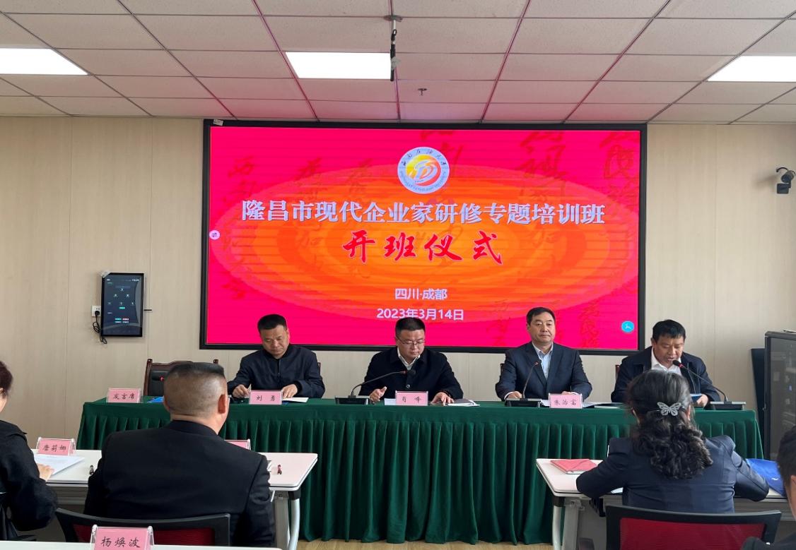 3月14日,隆昌市現代企業家研修專題培訓班開班儀式在國家大學科技園大樓604教室舉行。隆昌市委常委、組織部部長、黨校校長肖峰,隆昌市政協副主席劉勇以及我校繼續教育學院院長朱治富出席開班儀式。儀式由隆昌市委組織部副部長、兩新黨工委書記肖韌鋒主持。來自隆昌市國有、私營企業的52名高級管理人員參加儀式。