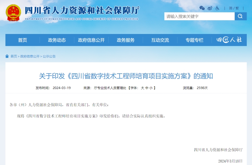 2023年10月,我校經省人社廳推薦、人社部遴選和專家評審,成功入選國家數字技術工程師培訓項目第二批培訓機構目錄,獲批大數據、虛擬現實技術兩個工程技術人員培訓資質。據悉,本期培訓班是我校開展的首期大數據工程技術方向的初級培訓,也是四川省首個,拉開了四川省數字技術工程師培育項目培訓的序幕。