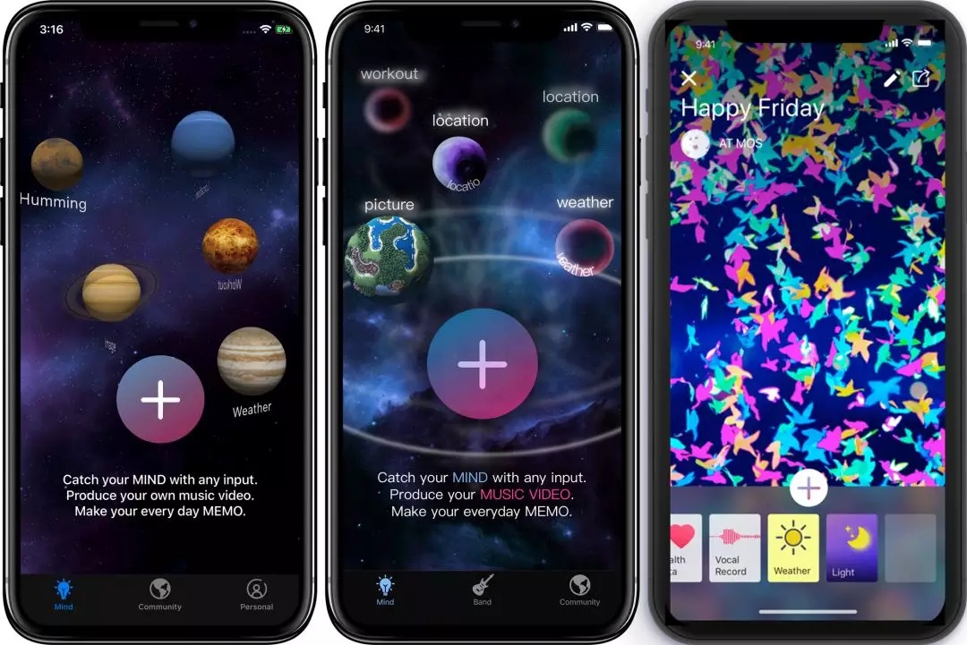 “Mind Band”是一款隨心而動的AI音樂創作平臺,它可以通過場景信息進行AI音樂創作,比如讀取用戶輸入的文本,相片,天氣等信息進行情感分析和音樂生成。在移動應用端,它可以幫助熱愛音樂但不通樂理知識的人進行編曲;可以作為生活表達的方式之一,成為每位用戶個性化定制的音樂日記;也可以應用于游戲場景配樂和影視配樂,進行精確化配樂定制服務。