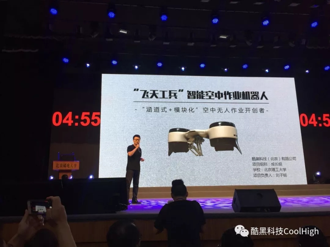 在第四屆中國“互聯(lián)網+”大學生創(chuàng)新創(chuàng)業(yè)大賽總決賽上,來自北京理工大學的“飛天工兵”智能空中作業(yè)機器人榮獲大賽金獎。