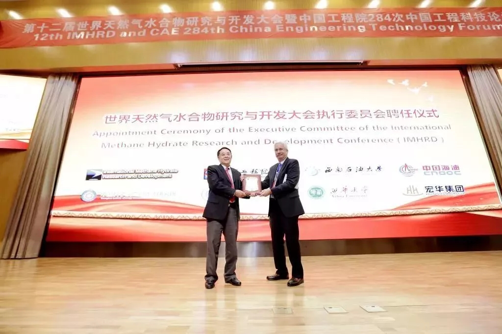 本次會議還進行了一項特別議程。由于周守為院士在天然氣水合物研究領域作出的突出貢獻及國際影響力,世界天然氣水合物研究與開發大會執行委員會決定邀請周守為院士加入執委會并在本次大會上舉行了聘任儀式,執委會主席Richard Coffin向周守為院士頒發了聘書。這是中國人首次進入該執委會,目前執委會共6名成員,分別來自美國、挪威、中國、日本等國家。