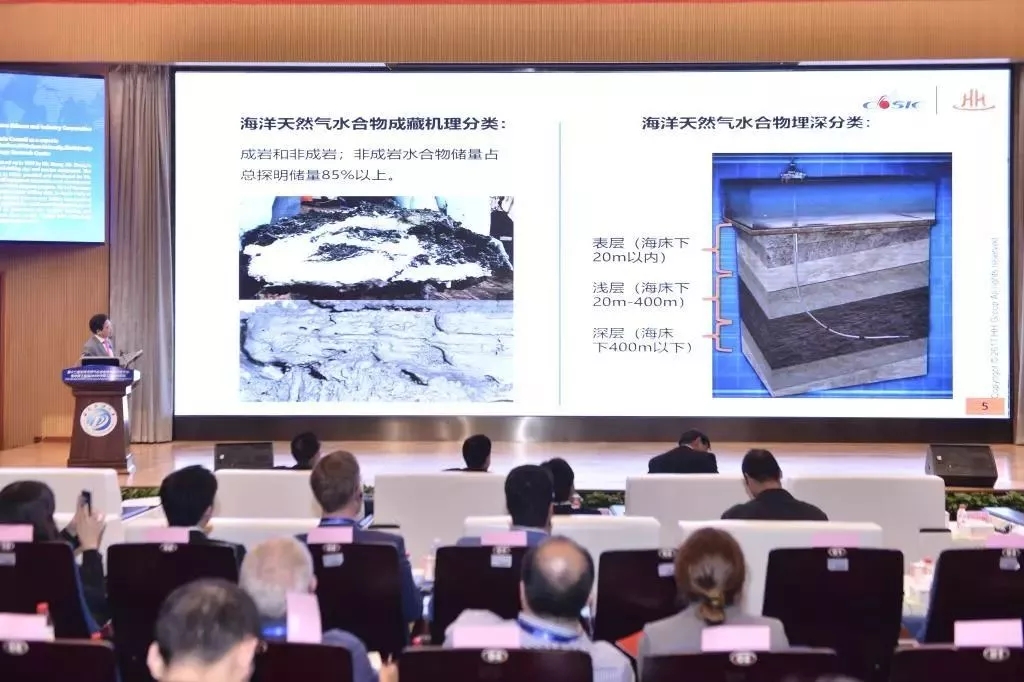 執委會副主席Kvamme在主題報告中指出,研究表明,天然氣水合物的資源量約為全球已探明傳統化石燃料碳總量的兩倍,天然氣水合物的開發與利用在未來將改變全球能源供需狀況。天然氣水合物的商業利用是世界難題,中外專家應加強交流合作,共同推進天然氣水合物開發利用。日本千葉大學教授Hitoshi Tomaru分享了日本天然氣水合物開采的經驗與教訓,指出,日本希望能延長天然氣水合物的開采時間,減少開采成本,目前還有一些技術難題需要突破,希望有更多企業和高校能參與到日本天然氣水合物的開采中來。