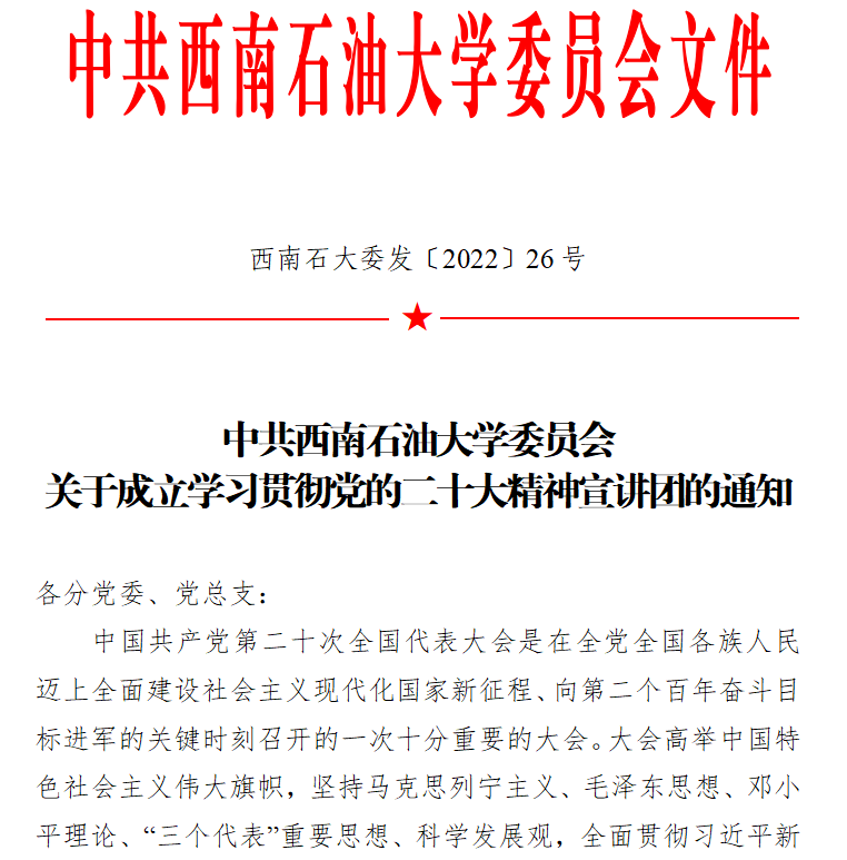 學校成立學習貫徹黨的二十大精神宣講團發文