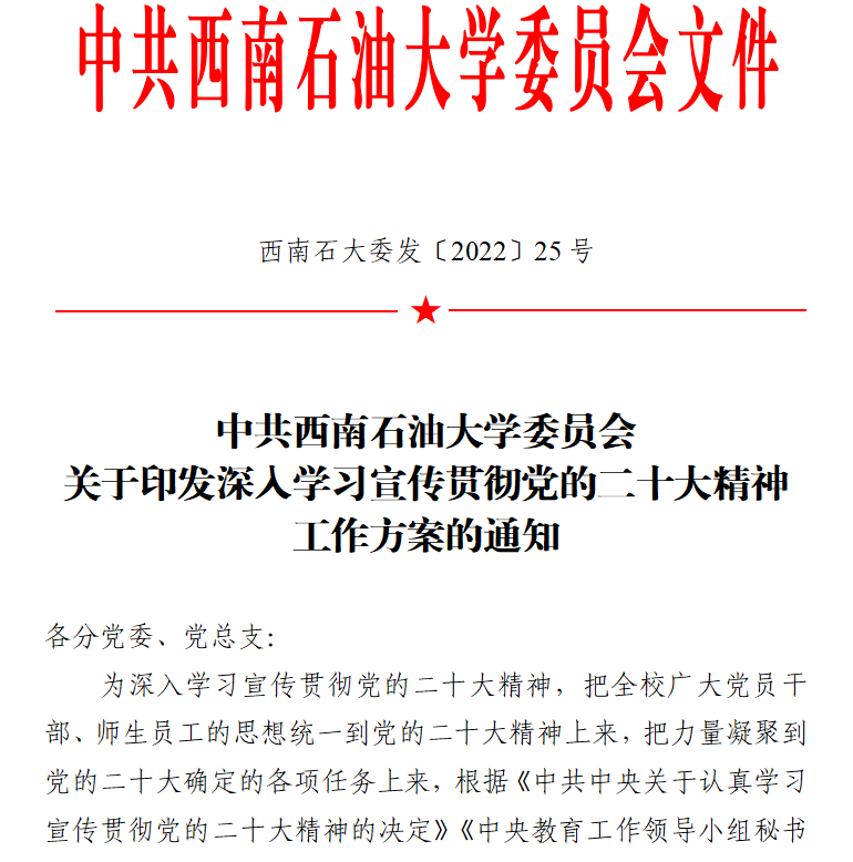 學習宣傳貫徹黨的二十大精神是當前和今后一個時期學校的首要政治任務,對于動員全校廣大黨員干部和師生員工更加緊密地團結在以習近平同志為核心的黨中央周圍,高舉中國特色社會主義偉大旗幟,堅定道路自信、理論自信、制度自信、文化自信,為全面建設社會主義現代化國家、全面推進中華民族偉大復興而團結奮斗,為建設世界一流學科、一流能源大學和百年名校貢獻智慧力量。