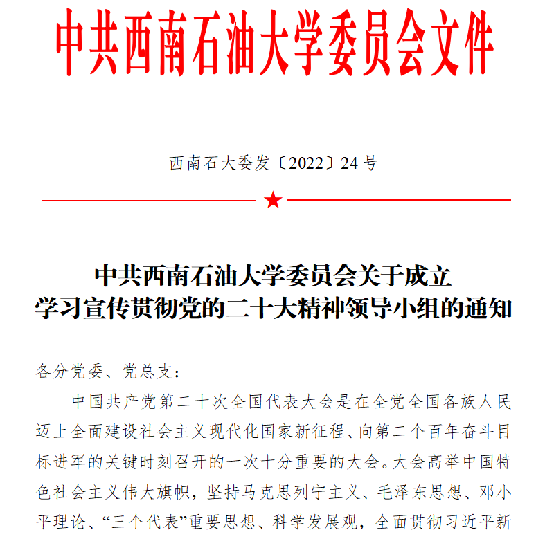 學校成立學習宣傳貫徹黨的二十大精神領導小組發文